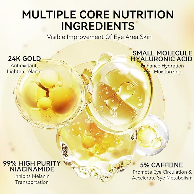 - 【REDUCES FINE LINES & DARK CIRCLES】: LANBENA 24k Gold Eye Mask also contains a highly effective complex of 24k gold, caffeine, and niacinamide to powerfully smooth fine lines, efficiently minimize dark circles and puffiness, and nourish the skin around the eyes.