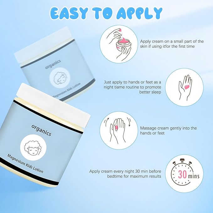 Magnesium Lotion for Kids, Junior's Bedtime Lotion, Magnesium Lotions For Sleep,Topical Magnesium Cream & Body Lotion Helps Stay Calm at Bedtime and During The Night(2pcs)