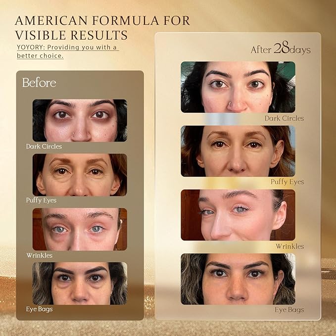 - Indulge in the opulence of YOYORY Retinol Eye Cream for dark circles and puffiness, meticulously crafted to elevate the radiance around your eyes. Featuring star ingredients like retinol, this eye treatment creams not only provides intense hydration but also fights free radicals and smooths fine lines with a non-irritating formula, cocooning your skin in a soothing embrace.