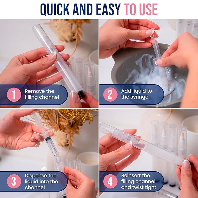 - Refillable & Washable: Each pen is designed to be washed and reused, ensuring a clean, sustainable, and cost-effective solution for all your beauty formulations.