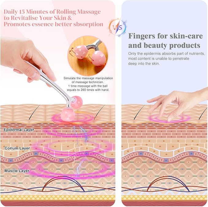 - Dual-Action Design: The diamond-shaped head targets pressure points (jawline, cheekbones, under-eyes) for deeper sculpting, while the smooth rounded side glides for full-face relaxation.