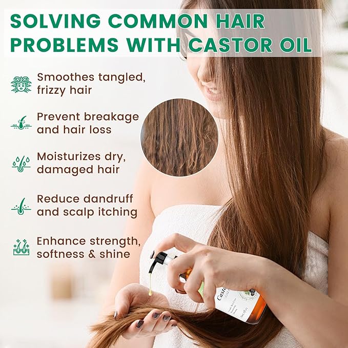 - Enhance Your Hair and Beauty Routine: From moisturizing to strengthening, our castor oil can be used in various ways to improve overall hair health. Add it to your daily routine for fuller brows, longer lashes, stronger nails, and healthier-looking hair