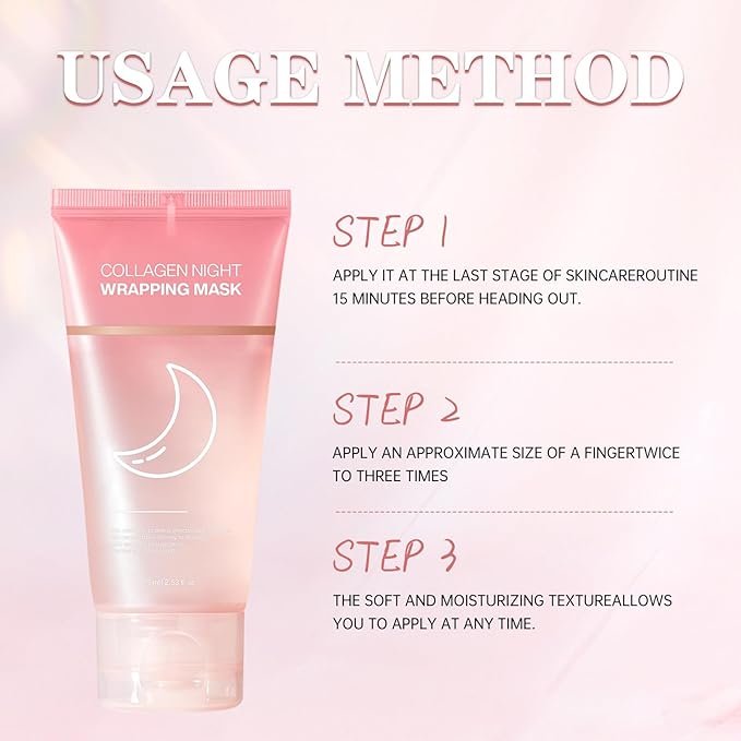 Collagen Night Wrapping Mask, Collagen Overnight Wrapping Peel off Facial Mask, Overnight Face Masks for Women, Korean Peel off Face Mask for Hydrates and Tightens Skin, 2.53 fl.oz (1)