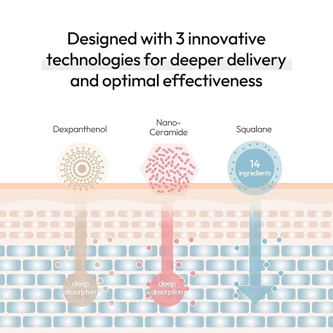 - Advanced Nano Ceramide Technology – Breaks ceramides into ultra-fine particles for superior penetration, strengthening the skin barrier and locking in moisture more effectively