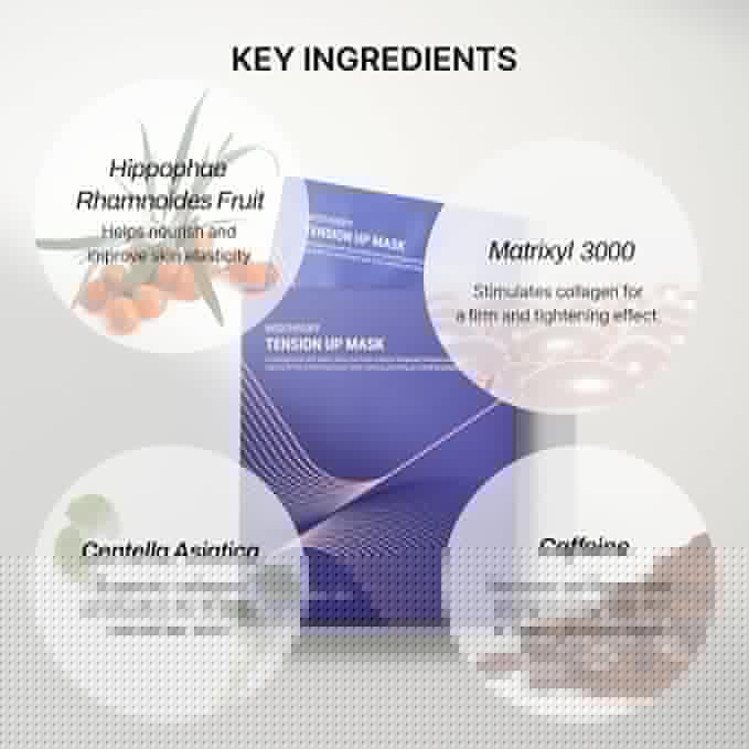 - [🔥 NATURAL CONTOURS & FIRMING EFFECT 🔥] Enhance your features with sharp, sculpted contours using our triple-layer Tension Up Mask. Designed to firm and refine sagging skin, this Korean collagen face mask visibly reduces puffiness and defines facial contours for a more youthful, radiant look. Clinically proven to improve nasolabial folds by 159% and reduce double chin volume by -1.27cc.