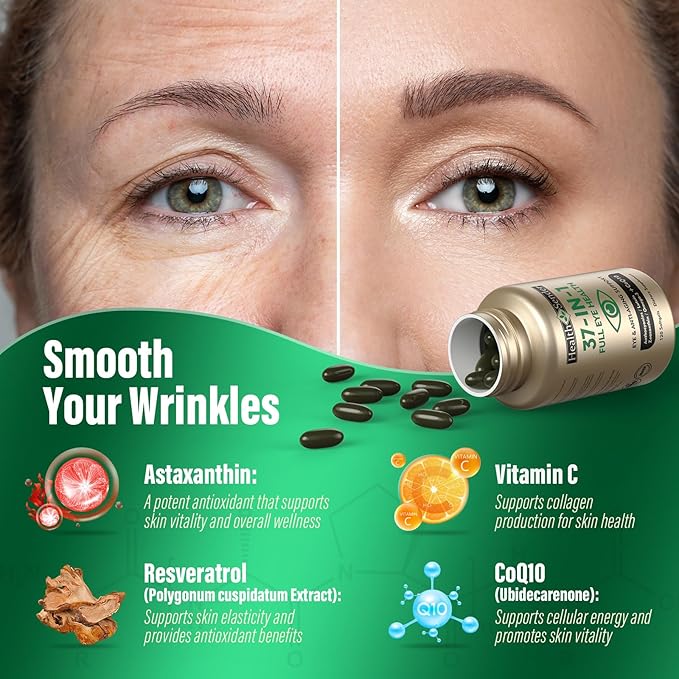 Hydrolyzed Collagen Peptide Filled NAD Biotin Gummies and AREDS 2 Lutein Zeaxanthin Omega-3 CoQ10 Bilberry Exctra Eye Vitamins Supplement 1+1 Combination Pack