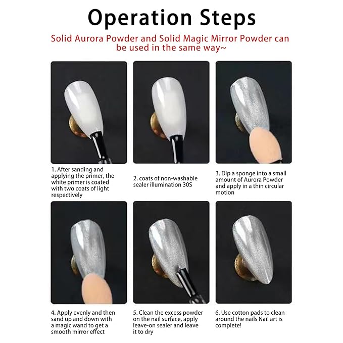 - Effective Nail Chrome:Chrome powder for nails has a mirror effect, which gives the surface of the nail a mirror-like reflection.Nail chrome powder can give a beautiful visual effect to your nails, making them look more beautiful and more fashionable