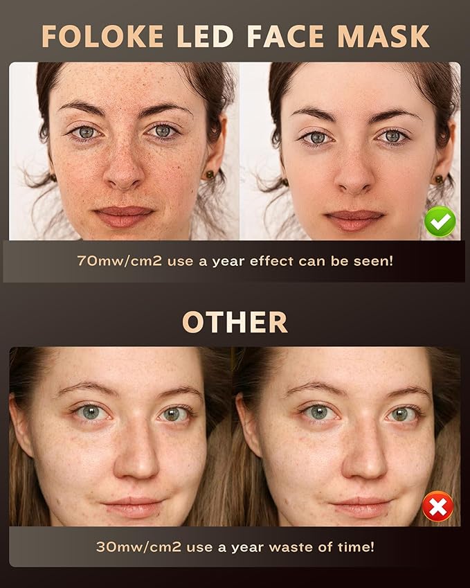 - ❤️【Facial Red Light Therapy】FOLOKE Light Therapy Mask LED Facial Mask Red light 630nm and Near Red light 830nm are the best combination of wavelengths for treatment, Red light is visible light and Near Red light is invisible light, which can emit different wavelengths of light for different types of skin. When using it, you can choose the wavelength that suits you.