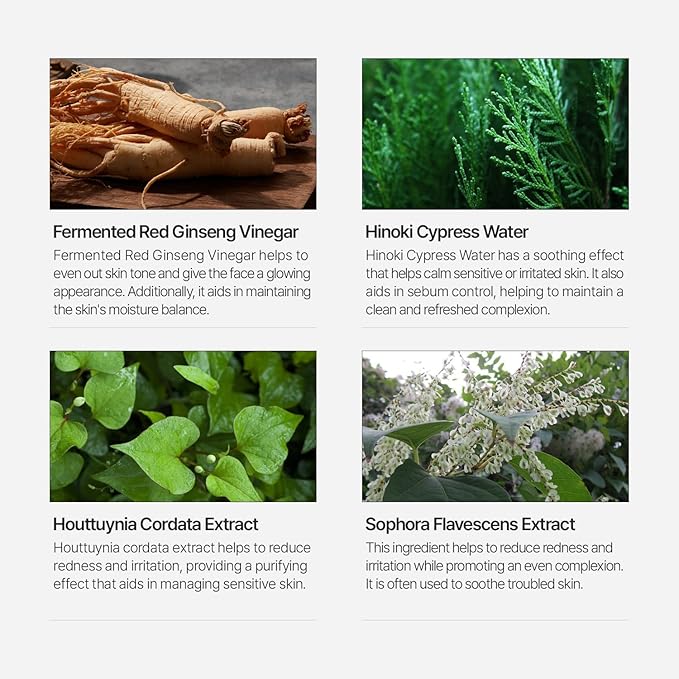 - FERMENTED RED GINSENG COMPLEX: Exclusive blend featuring 6-year Korean red ginseng, purifying Hinoki water, and traditional herbal extracts enhanced through fermentation delivers essential nutrients while improving skin's natural balance.