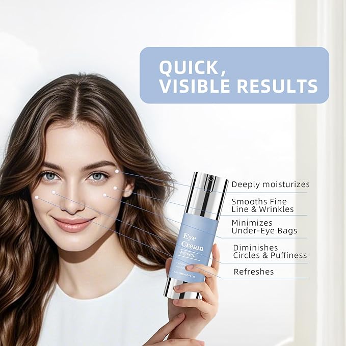 - 【Anti-aging Eye Care】This retinol eye cream is significantly dense, smooth and lifts the delicate skin around the eyes, maximizing the diffusion of light and targeting puffiness, dark circles, fine lines and wrinkles.