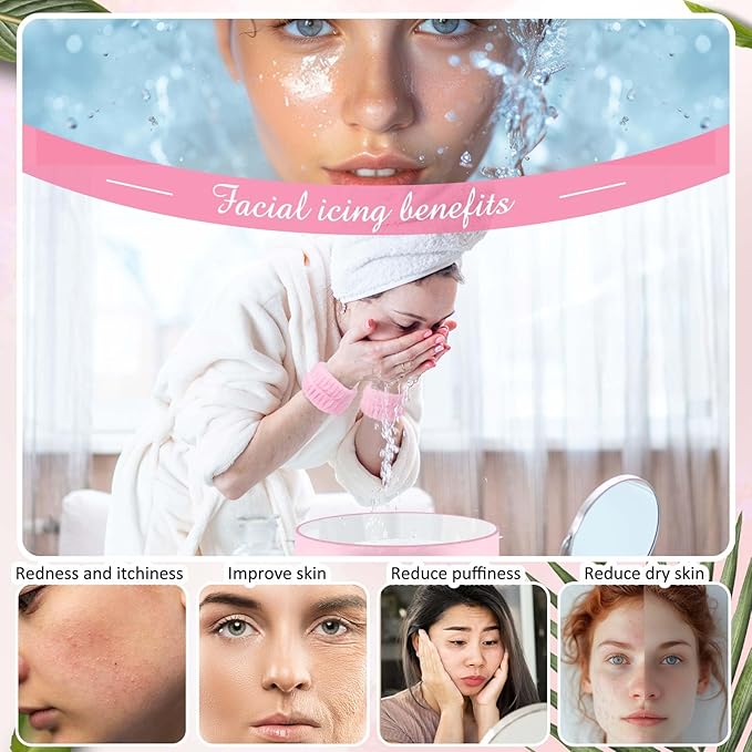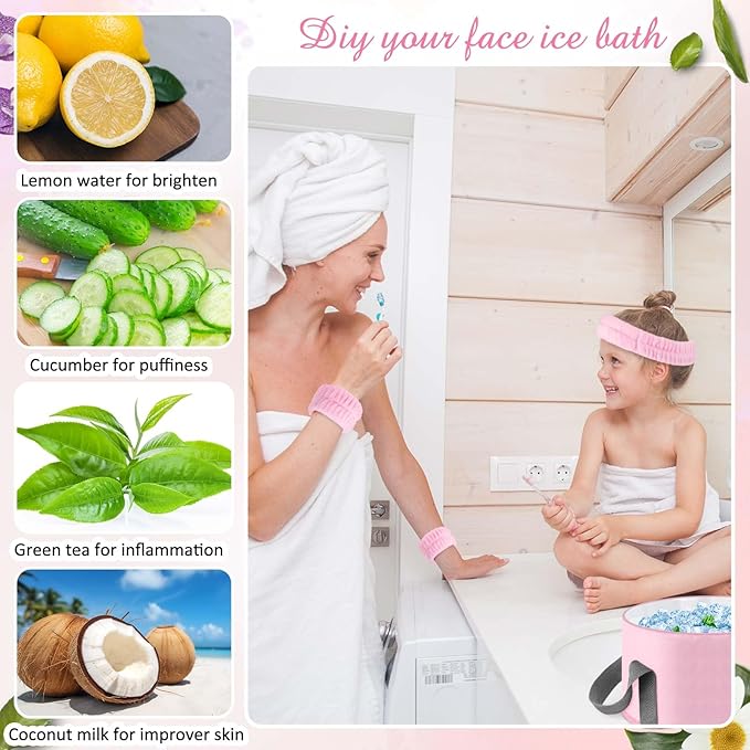 - Quality Materials: crafted from PEVA material, insulated aluminum film, and twill fabric, the pink facial ice bath bowl is designed to withstand both hot and cold temperatures; The wristbands and headband are made from plush fabric, offering excellent water absorption and keeping sleeves dry