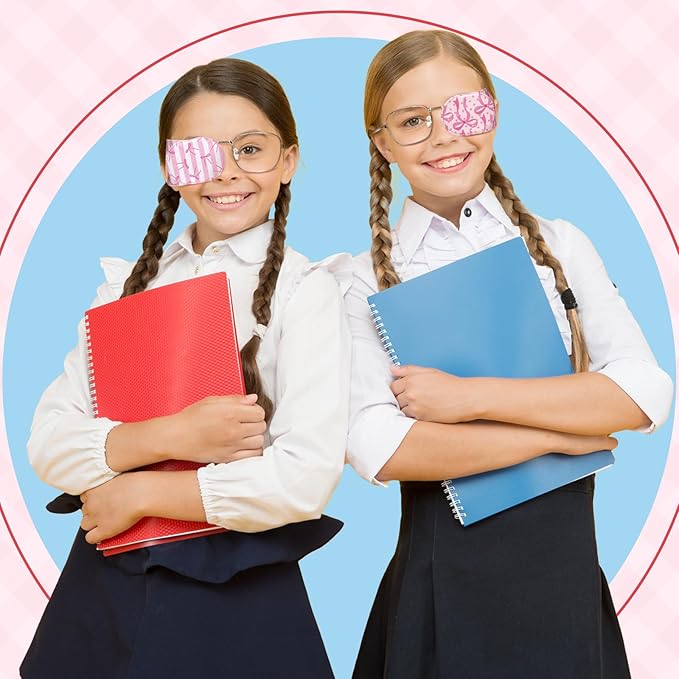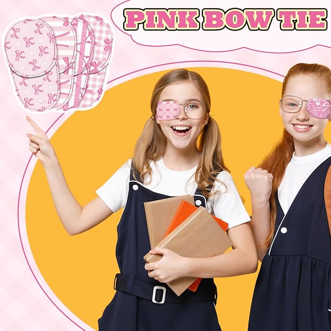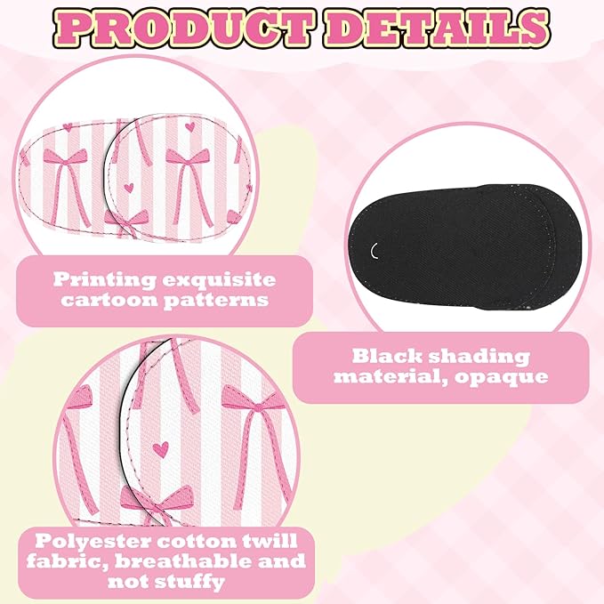 Newcotte 12 Pcs Eye Patch for Kids Toddler Reusable Adjustable Girls Boys Eyepatch for Glasses Left or Right Eye Patch, Assorted Patterns (Pink Coquette Bow)